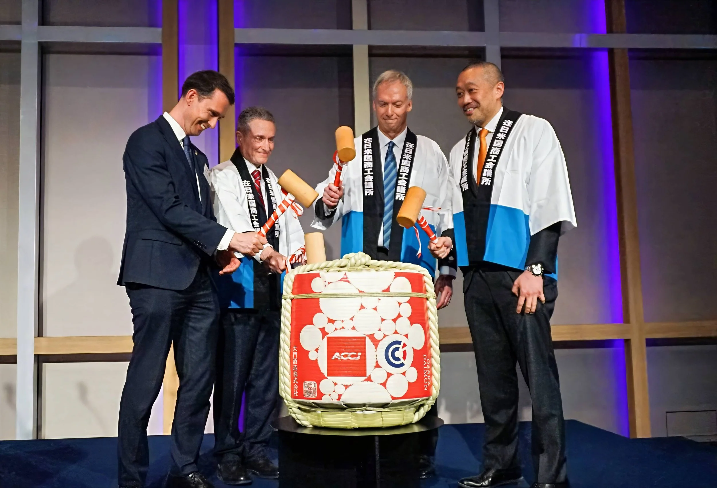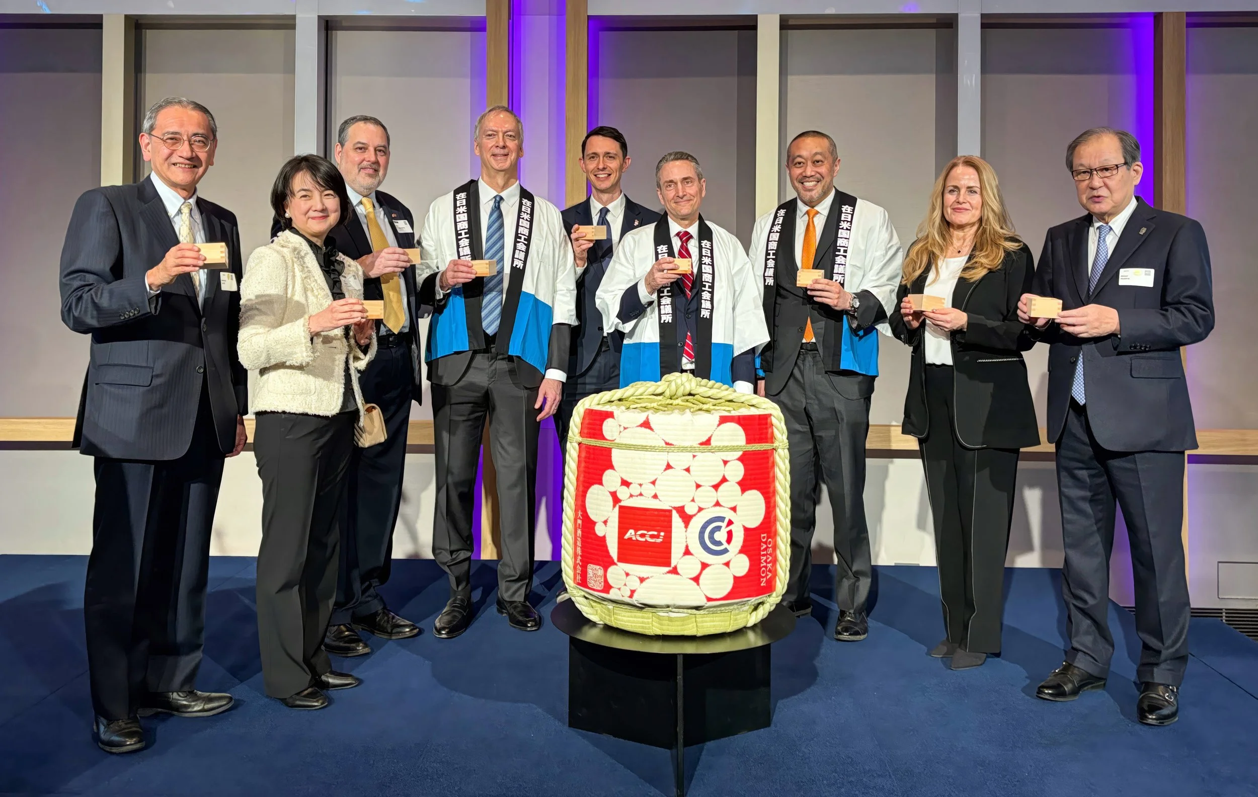 The events kicked off the New Year with the traditional kagami-biraki—the ceremonial cracking open of a sake barrel—followed by networking with fellow members, friends, and officials from the US and Japanese governments.