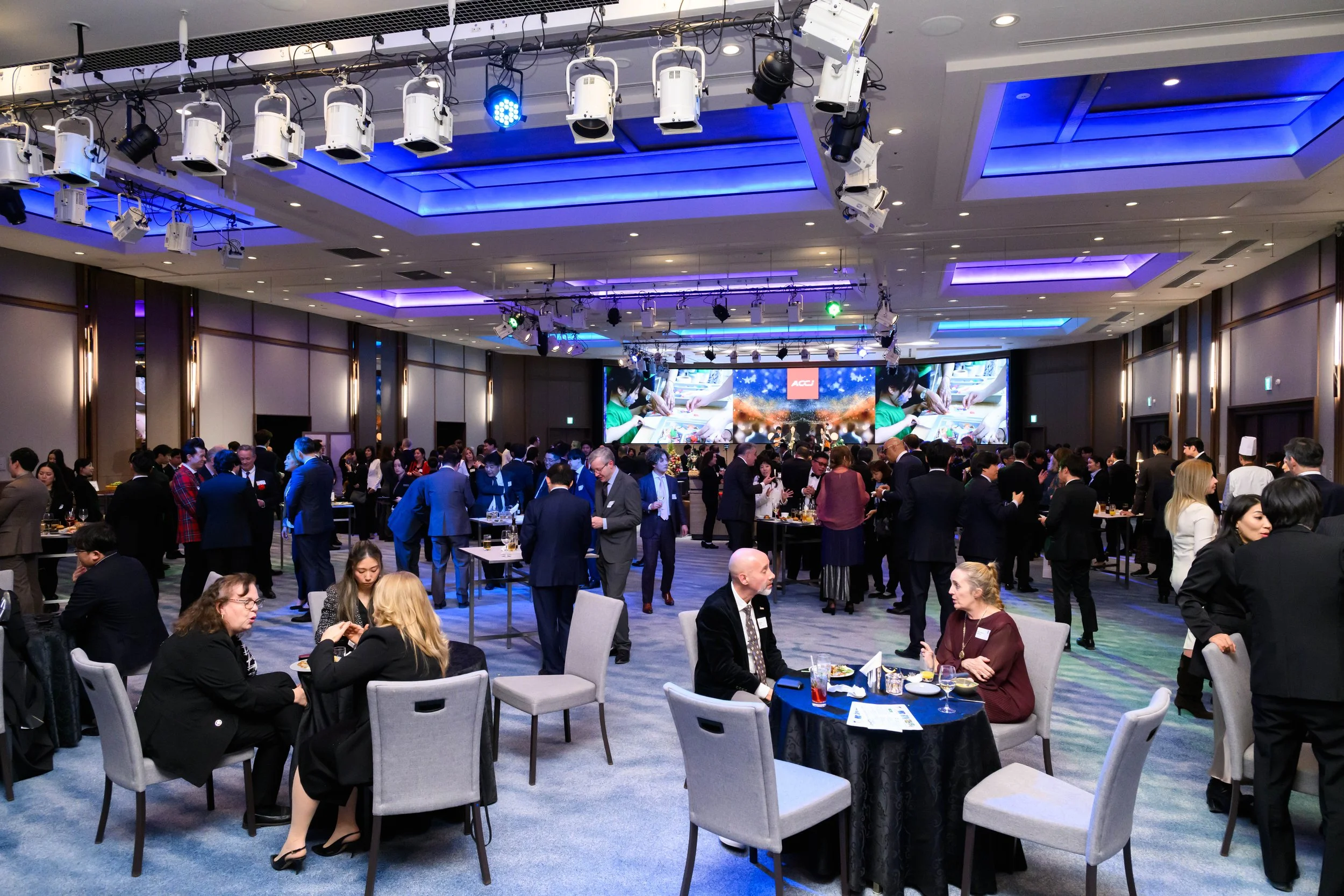 ACCJ President Victor Osumi took to the stage against a starry backdrop to welcome everyone to An Evening of Connection and Appreciation, a formal cocktail-style reception that brought together nearly 300 ACCJ members and guests.